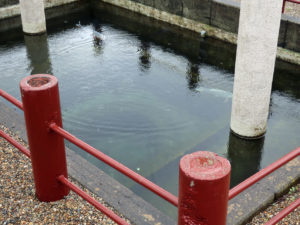 このあたりは汽水らしいが、鯉が泳いでいるので分かるとおりこの中は真水。
