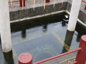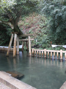 湧き水で奥の湧出口の水は飲むこともできるが、この時は翌日の大寒禊の準備のため立ち入り禁止だった。
