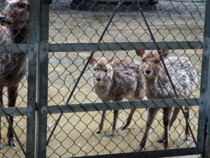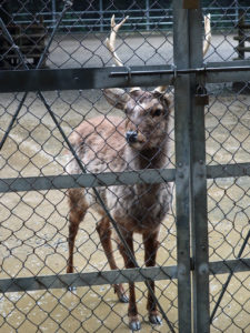ちょっとかわいそうになったので買ってあげたのだが、子鹿にやろうとすると牡鹿が割り込んで横取りをはかるので大変だった。