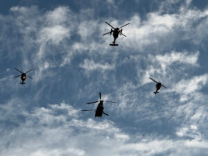 今回で土浦花火大会は100周年ということで、近くの霞ヶ浦駐屯地から陸自が記念飛行にやってきた。