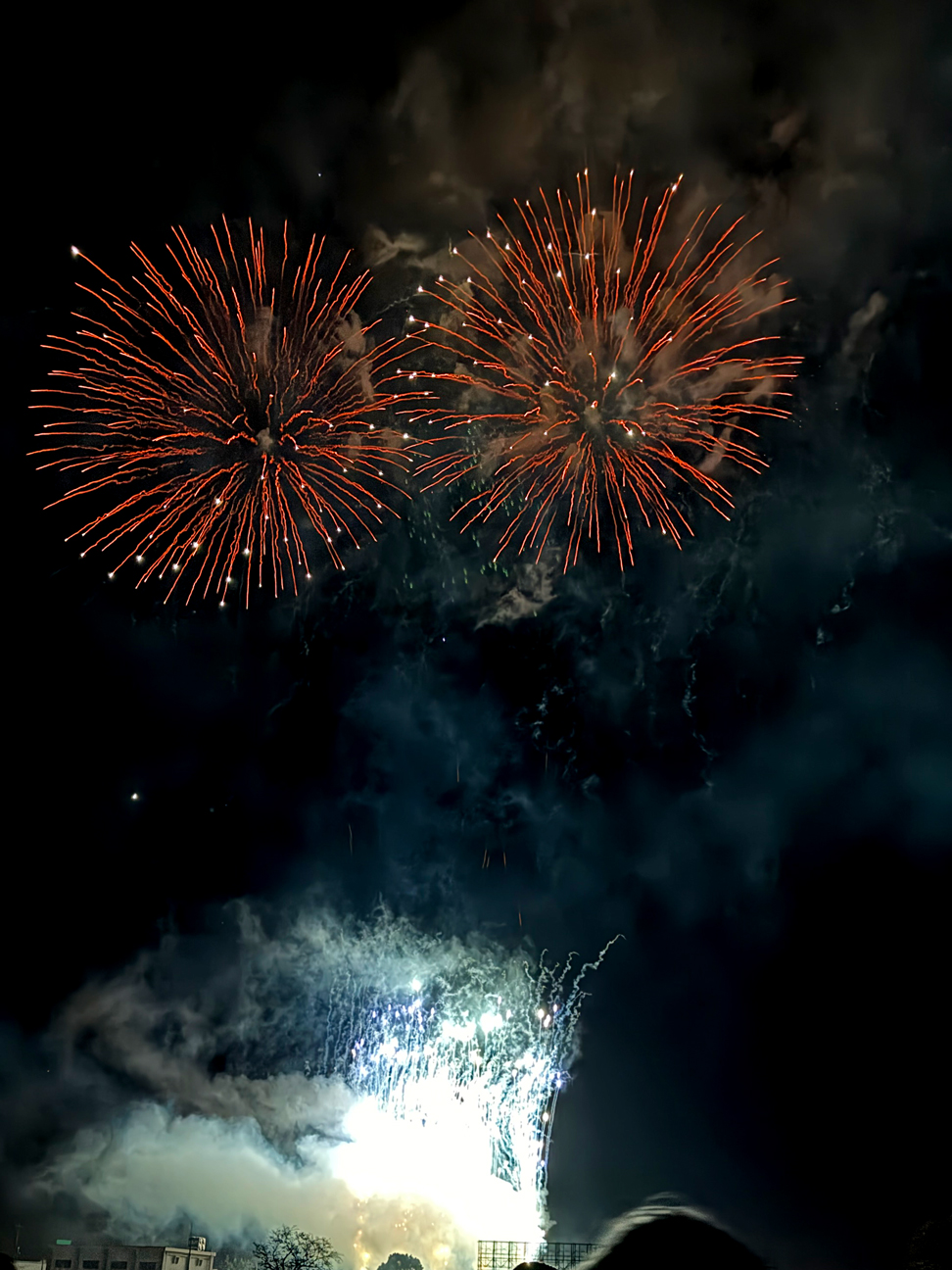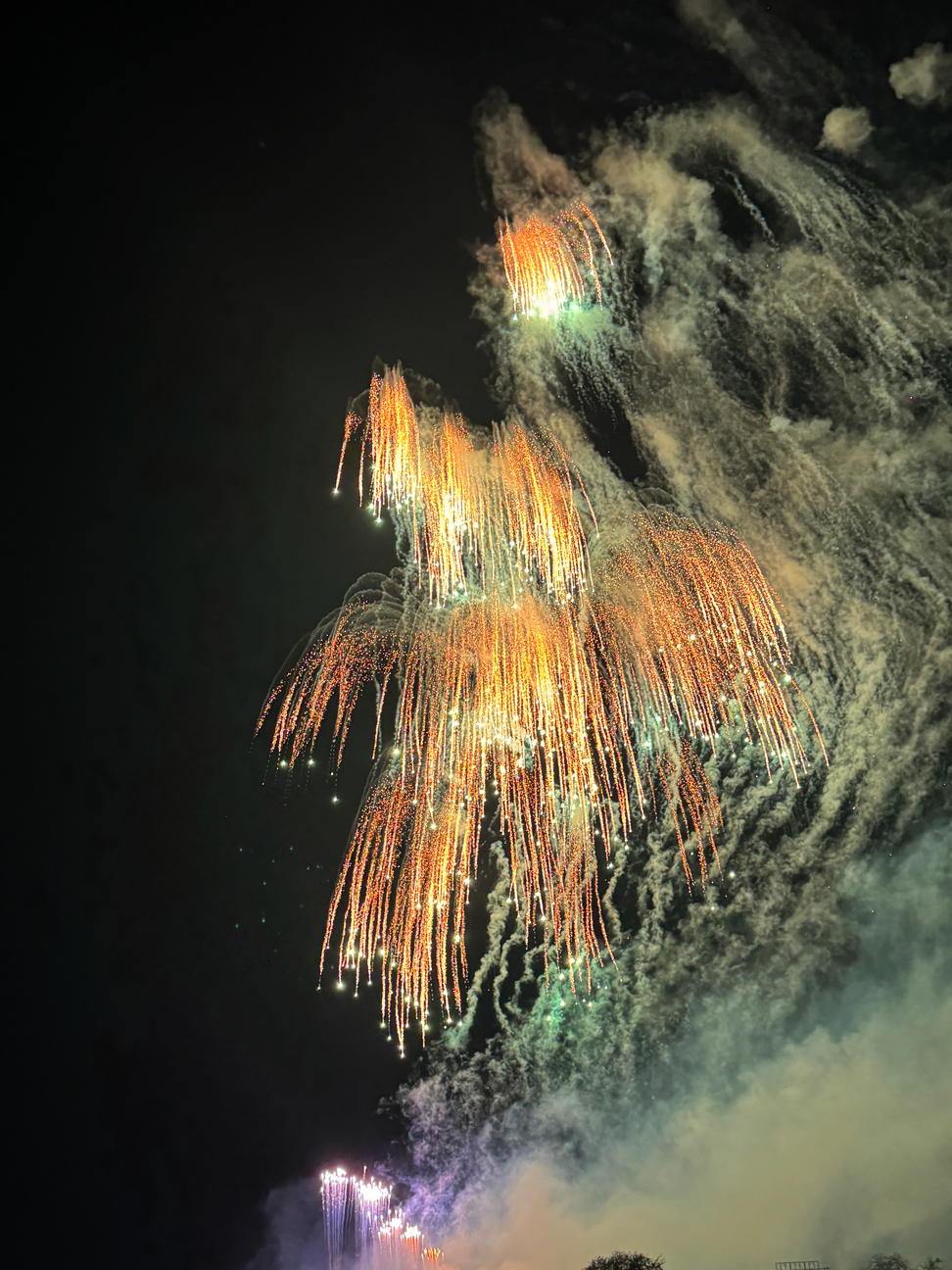 ただ、iPhoneって花火だけでなく、煙まで美しくくっきりと写してしまう。まあスマホに花火と不要な煙の区別がつくわけがないので仕方ないのだが、おかげで花火よりも煙が目立つ写真が量産されてしまった。