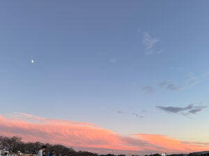 ここは航空機の航路になっているらしくて、ひっきりなしにいろんな飛行機が月をかすめて飛んでいくので、それを見ているだけでも結構楽しい。