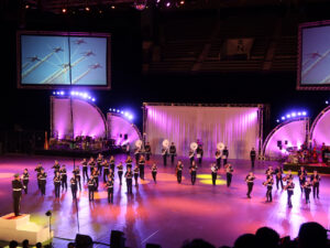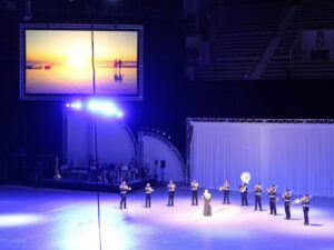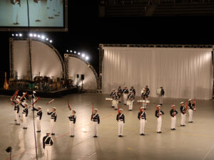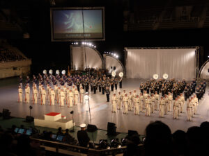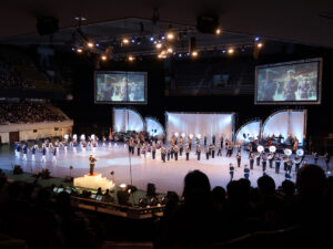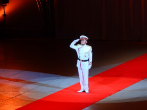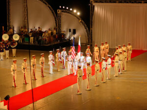 オープニングセレモニーの「ワルキューレの騎行」。左から陸、海、空。