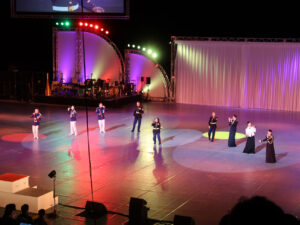 指揮者は双方が並んでかわりばんこに指揮してる。