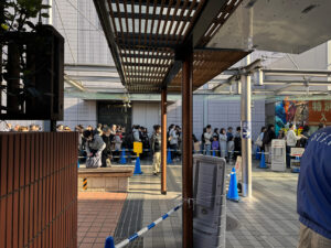 どのぐらい混んでるかと覗いてみたら、行列していた。