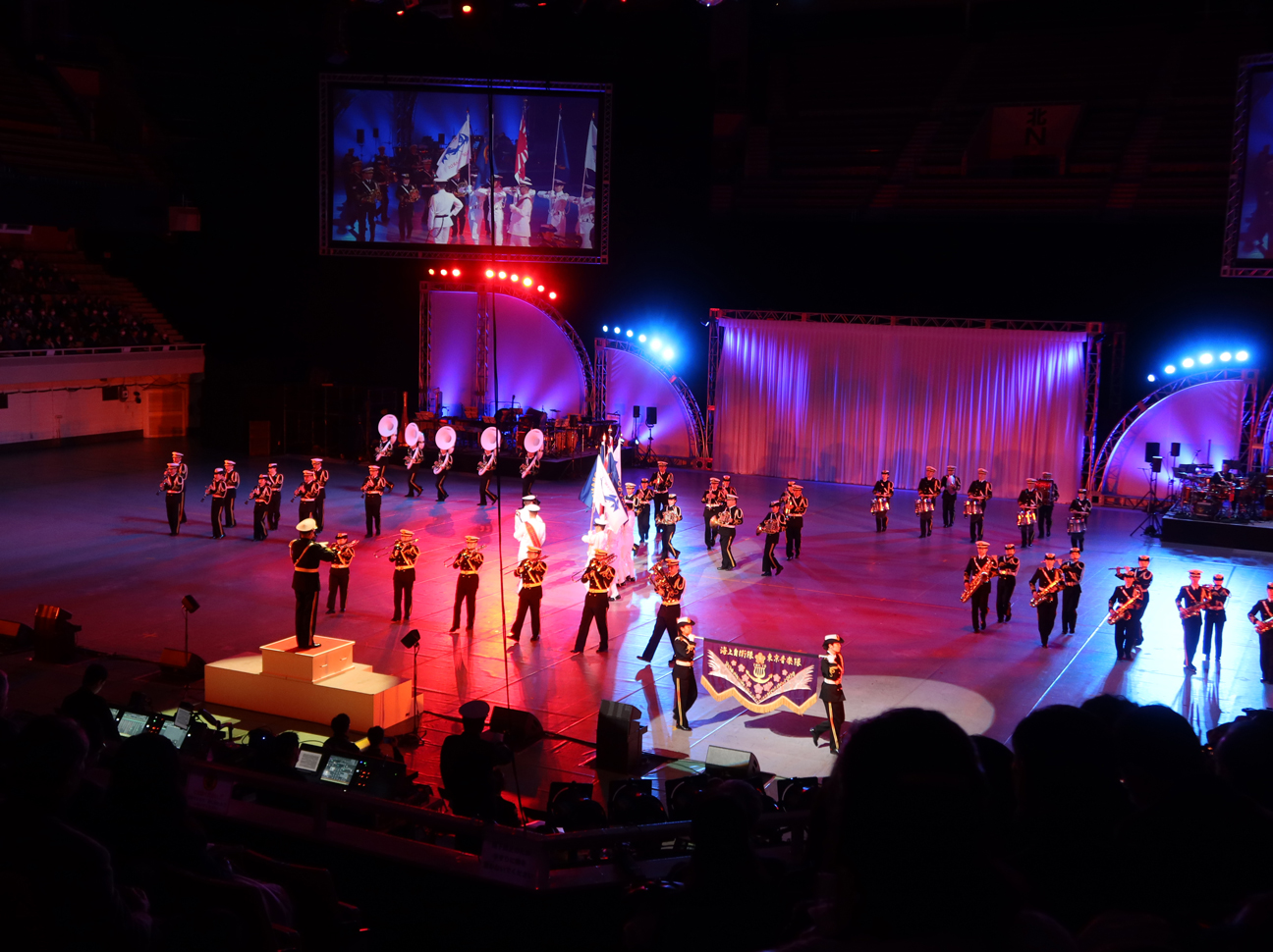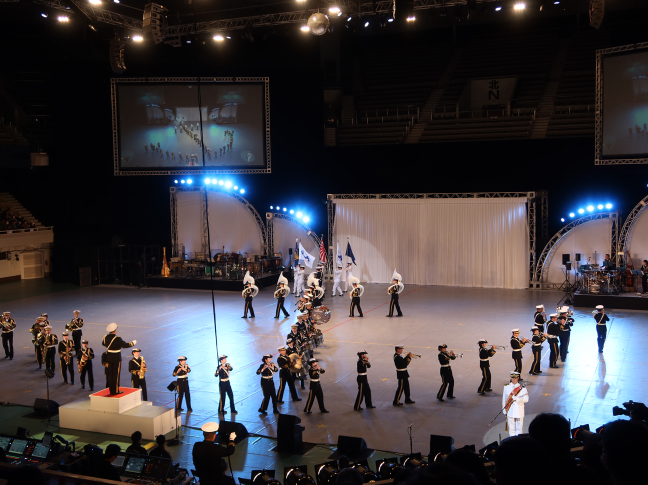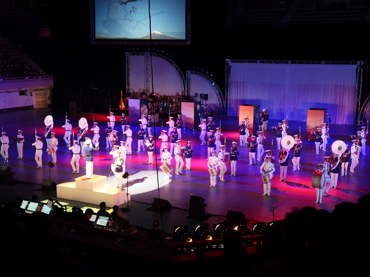 オープニングセレモニーの「ワルキューレの騎行」。左から陸、海、空。