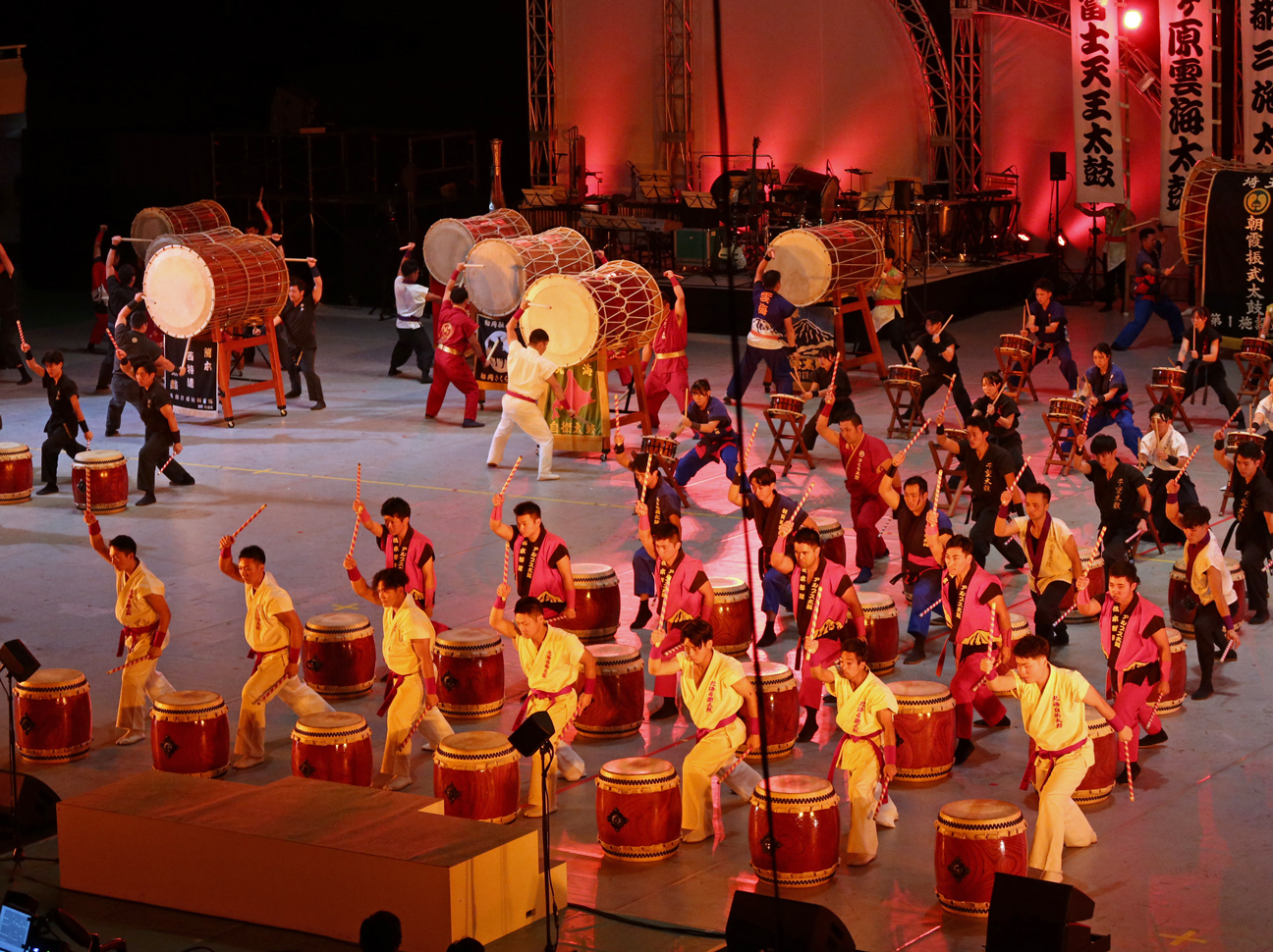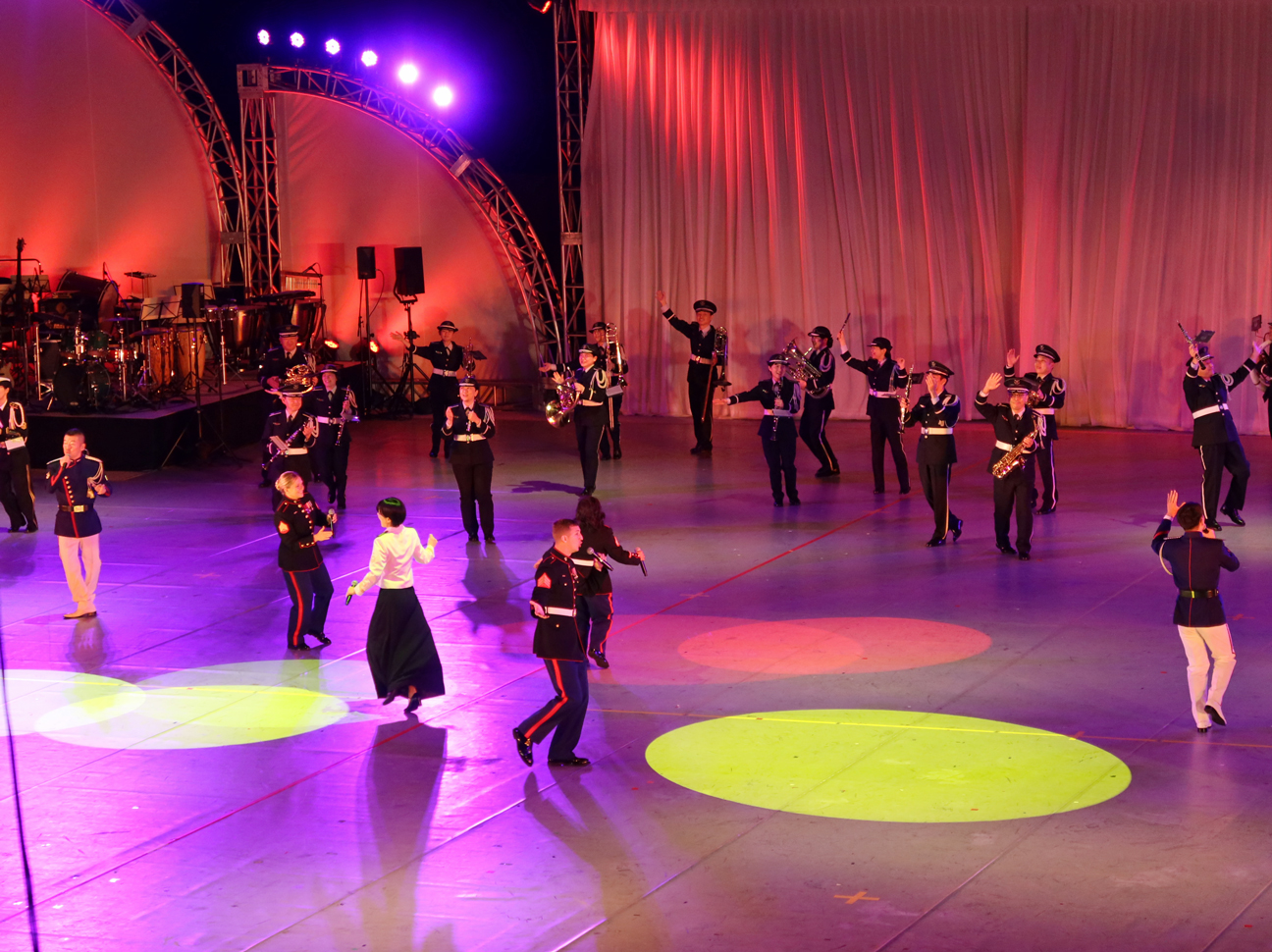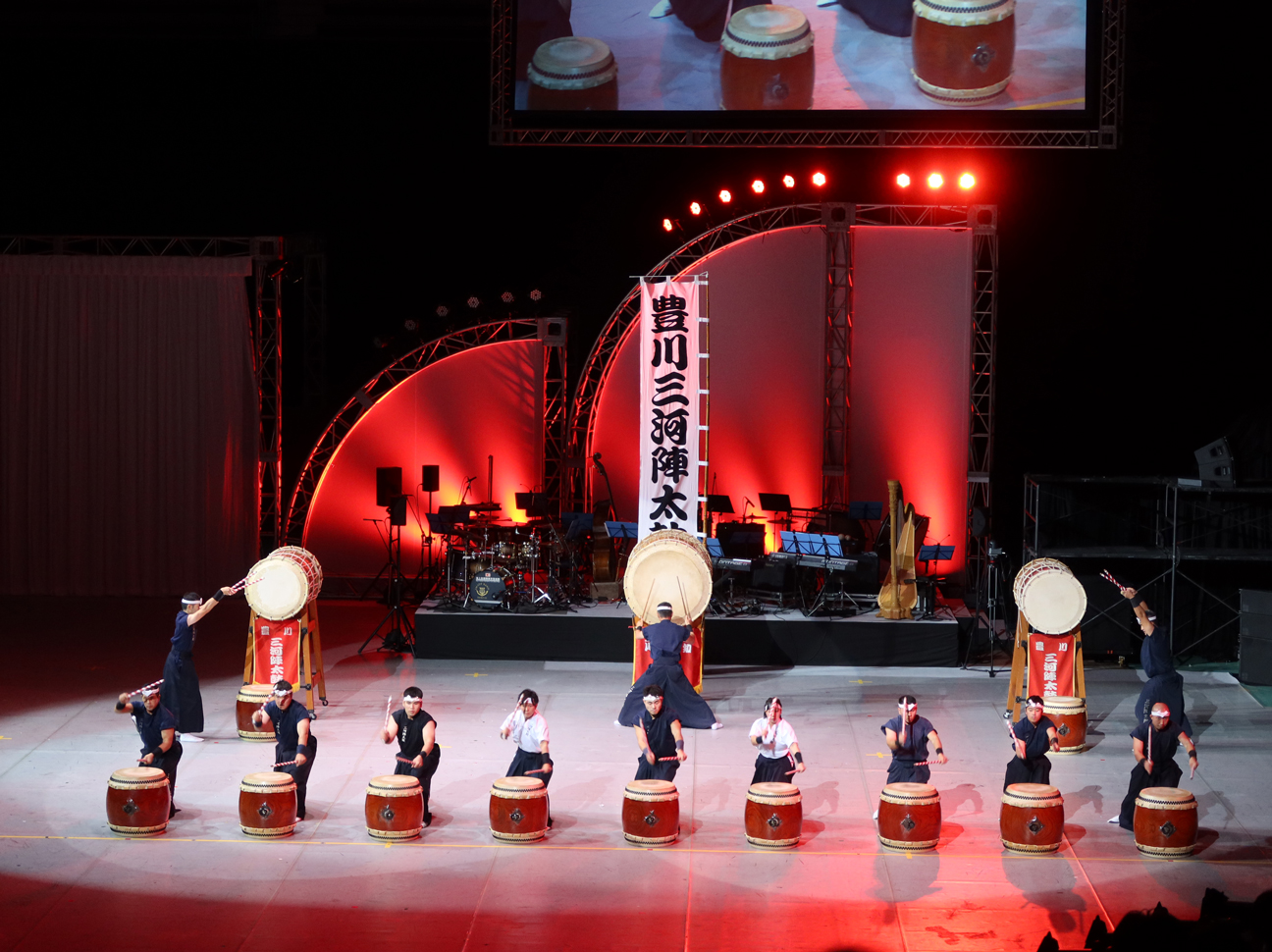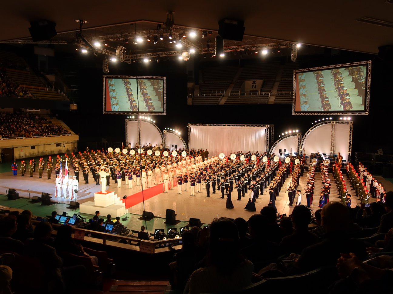 オープニングセレモニーの「ワルキューレの騎行」。左から陸、海、空。