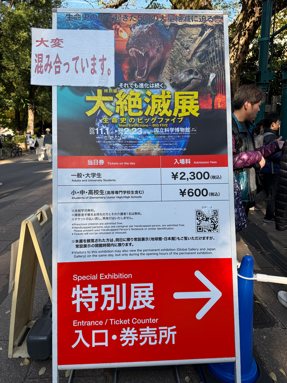 さて、この日は元々、上野の科学博物館の「大絶滅展」に行く予定を立てていたのだ。