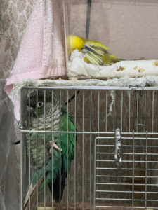 病院では、目のすぐ近くに手を近づけても全く反応しないので、もしかして目も見えていないのでは? などと先生は心配をしていたが、元々この鳥はそういう事に無頓着なたちで、目にゴミがついていても平気な顔をしていたりする。とりあえず行動を見ている限りでは視力は問題ないっぽい。