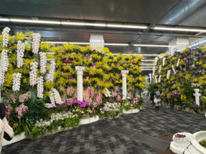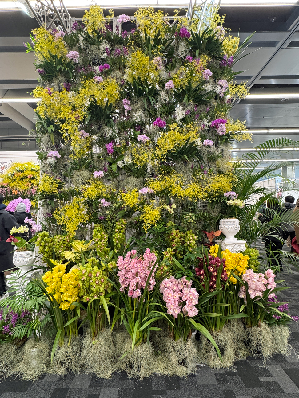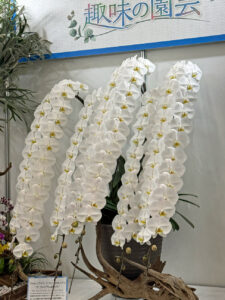 今年の目玉は、遺伝子操作で作られたブラックライトを当てると光るコチョウランなのだが、展示ブースが1時間ぐらい並びそうな勢いで行列していたのであきらめた。