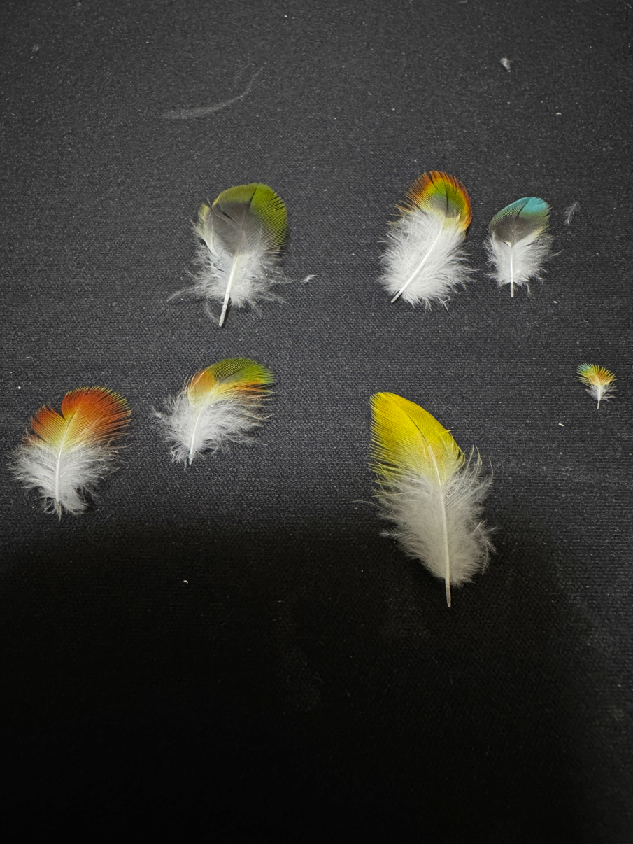 これだけの羽を集めるのに何羽のルリコンゴウが……などと考えてはいけない。