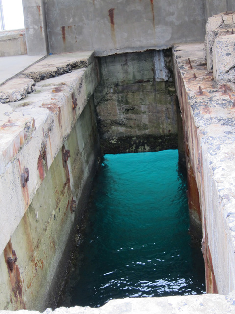 水面まで数メートルある上に薄暗く、おまけに波が当たるたびにタポン、タポンと響く水音がなんというか、背筋に何かがくる恐怖感がある。