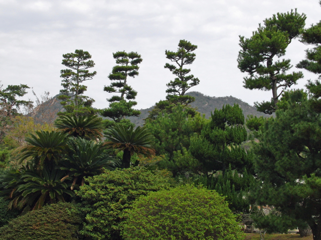 植え込みの向こうには、広瀬武夫が100回登ったという古鷹山。