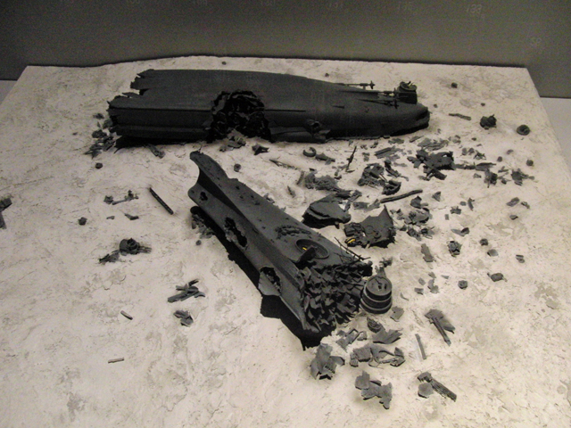 右:こんな風に沈んでいるらしい。これじゃ宇宙戦艦への転用は無理だね。