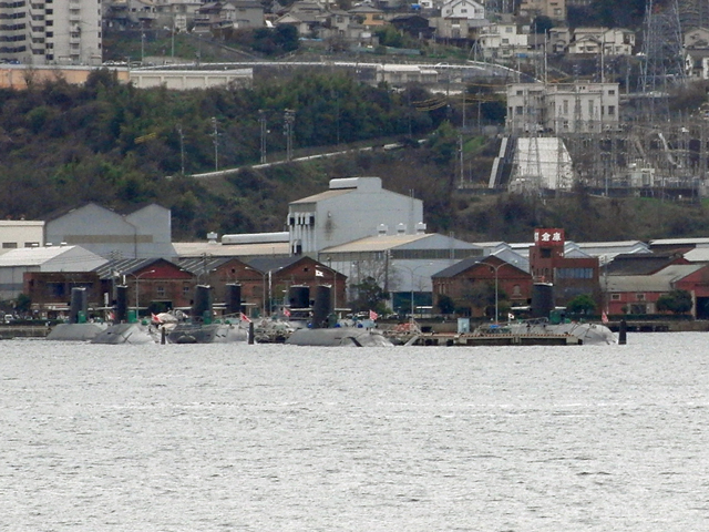 帰りに基地の隣のダイエーのレストランに入ったら、窓から潜水艦の目刺しが見えた。