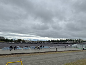 なので今回は後ろの演習場を見下ろす土手席に早々に行ってしまった。