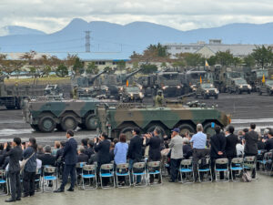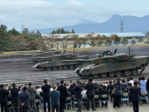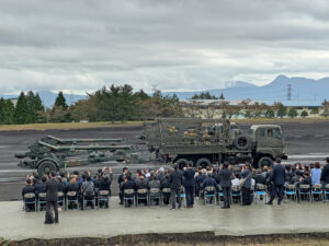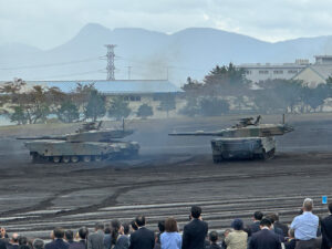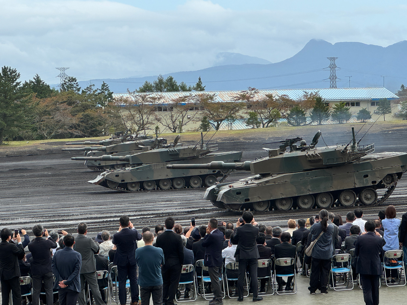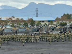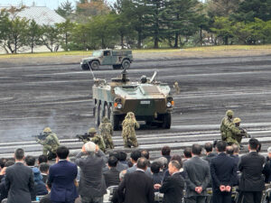 陸自は「戦争と平和」を表現。戦争部分は儀仗隊と共演でゴジラ。