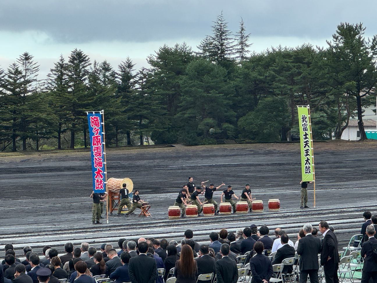 陸海空の各自衛隊員が器材を叩く音で始まる粋な演出。