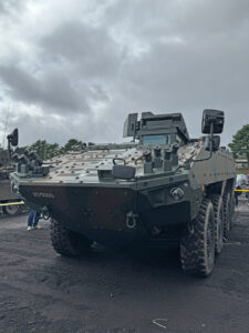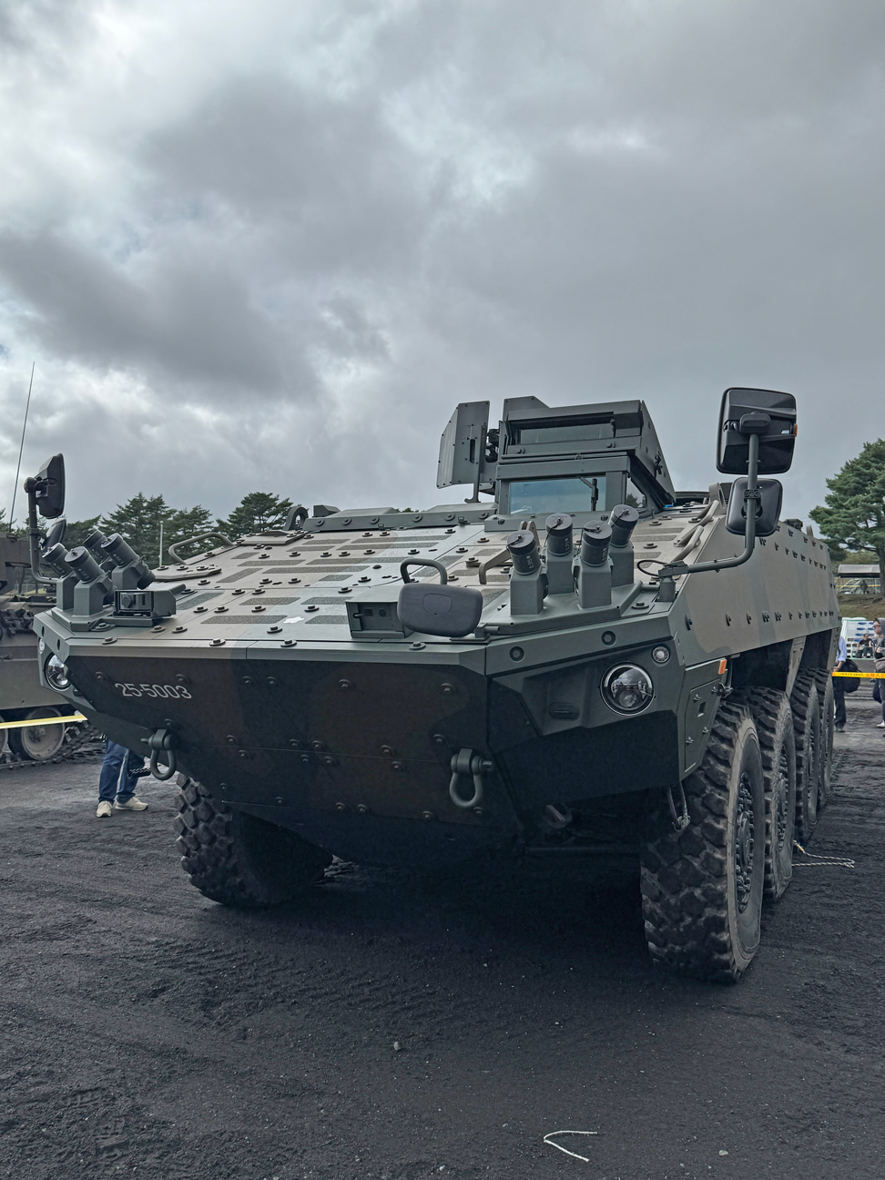 新型の装輪装甲車の顔面。なんかすごくゴツい。
