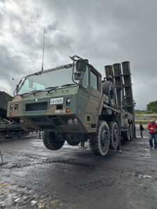地対艦ミサイル。浮いてる(正確には支柱で車輪を浮かせているだけ)。