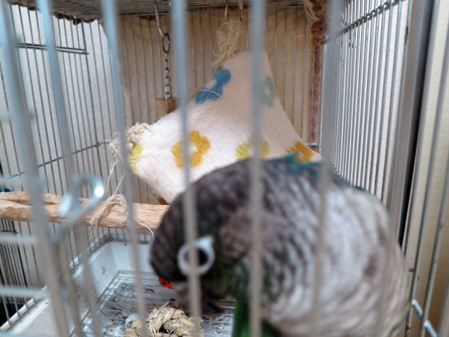午前中はいまいちぼんやりしているようで、エサも食べてはうとうとし、また眼を覚ましては食べという感じだが、午後になると活発になってご覧の通りのいたずら三昧となる。