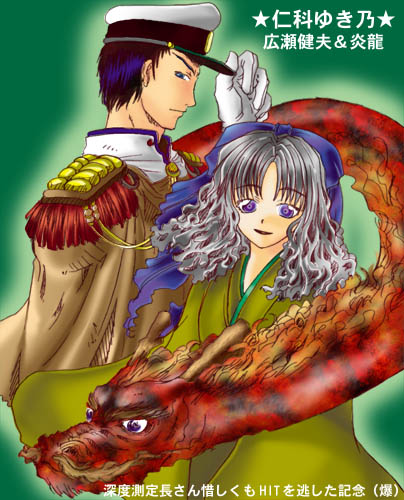裕福な士族のひとり娘としてなに不自由なく育てられたため、比較的おっとりとしていて行儀もいい。ものの見方もまっすぐでひねくれたところがなく、よく言えば素直、悪く言えば単純な印象がある。が、意外と意志が強く、物事を冷静に計算して実行する行動力も持っている。 周囲から見ると、養父(とばあや)に溺愛されさしたる苦労も知らずのびのびと生きているようだが、身元の知れない捨て子で異人、しかも得体の知れない力を持つという自分自身に対してかなり強い引け目を抱いている。その裏返しか、肉親や親しい人への情は人一倍強い。 異人だからと後ろ指を指されないようにと、士族の娘として恥ずかしくないだけの家事や教養は仕込まれている。 また、生まれつき妖を呼び操ることができる。呼び出す妖は蛇、猫など身近な動物か、人々の間でなじみ深いいわゆる「妖怪」に似た形をしたものであることが多い。 実はそれらの妖は、実際には「呼び出して」いるのではなくゆき乃自身が「作り出して」いるのだが、本人はその違いに気付いていない。 仁科政信(にしな・まさのぶ)49歳・男性 ゆき乃の養父。陸軍の大佐で、一見厳格だが面倒見が良く、特にゆき乃には大甘の父でもある。妻を産褥で、生まれた娘もわずか数ヶ月後に病で失い、人生投げかけていた時に近所の神社でゆき乃を拾う。その後、周囲の反対も構わず彼女を娘として引き取り、育てあげた。 岡田喜和(おかだ・きわ)60歳・女性 ほんの少女の頃から仁科家で奉公している。ゆき乃にとっては使用人というより祖母のような存在。 主人である仁科政信が拾ってきた異人の赤ん坊を最初は気味悪がっていたが、いつの間にか情が移り「ばあや」と呼ばせて可愛がるようになってしまった。 プレイヤーのコメント: 家族構成のモデルは『はいからさんが通る』の紅緒さんの家です。別に両親がそろっていても良かったんですが、ゆき乃の設定として「出生と外見以外は普通」というのがあったので、異人の捨て子を一生懸命育てるような境遇の親ってどんなもんだろうと考えて、こういう形になりました。 炎龍(えんりゅう)享年44歳・男性 017『深川百鬼夜行』NPC 本名仁科美智雄(にしな・みちお)。炎を操る裏高野の退魔師。ゆき乃の養父の実弟だが半妖として生まれ、関西の密教僧に引き取られた。同じ半妖で捨て子のゆき乃には養父以上に甘かったらしい。ただ“みちお”と呼ばれるのはイヤなんだとか。 清心大僧正の護衛として深川に来ていたが、『聖域』での“長老”らとの対決の際、大僧正をかばって命を落とした。 プレイヤーのコメント: 本名、設定共にマスター側からもらったものです。DRSを申請したはいいが、説得力のある理由付けに苦しみ「若い頃に家を飛び出して退魔師になった」とかいう適当なものをくっつけといたら、こんなに尾ひれがついて(?)戻ってきたので笑っちゃいました。 ちなみに、叔父がそうならその兄も当然そうだろうということで、養父の仁科政信も自覚してないだけで実は半妖であるという裏設定ができてます。記録にはないながらも、仁科家には昔妖の血が入っていて、それがまともに出たのが次男坊の美智雄こと炎龍という感じですね。 ゆき乃との間にはいろいろとエピソードもあったようなので、ぜひ生きていてほしかったNPCです。 ヴァリニャーノ(-)享年27歳・男性 064『帝都斬神列伝』NPC 金髪痩身、美貌の伊太利亜人剣士。多分フルネームはアレッサンドロ・ヴァリニャーノ。 ゆき乃の実の兄。現世での名は仁科名乃介と言ったが、記憶を失い、かすかに残る斬神剣の既視感をもとに剣術を学んで剣術集団『黄金銃士団』を作っていた。が、斬神剣をめぐる剣術杯の中で安土桃山時代の宣教師「ヴァリニャーノ」だった前世に目覚め、親しかった織田信長のために超人となり、照らされざる者に戦いを挑んで死亡する。 プレイヤーのコメント: 最終章だし、この際「実の身内」もひとつくらい取っておこうかなと思ったんですが、採用されたその月にヴァリニャーノはいきなり死亡。再会がそのまま永久の別れとなってしまいました(苦笑)。実はそうなるんじゃないかと思ってはいましたが。 仁科名乃介というのは、DRS採用に伴ってマスターが作った設定ですが、どうも微妙にゆき乃の自由設定とつじつまが合いません。もしかすると自由設定見てないんじゃという気もしないでもないですが、とりあえず物事は前向きに考えようということで、つじつまを合わせるために書いたプライベートリアクションがこの『行李の中から』です。 なお、ヴァリニャーノは安土桃山時代の実在の人物だそうです。 中牟田倉之助(なかむた・くらのすけ)59歳・男性 004『深き海より……』NPC ゆき乃の伯父(養父の実姉が中牟田家へ嫁いだ)。前海軍軍令部総長で海軍大将。 中牟田弥生(なかむた・やよい)23歳・女性 004『深き海より……』NPC 中牟田倉之助の娘でゆき乃の従姉。 新設の看護学校の第1期生でキャリアウーマ