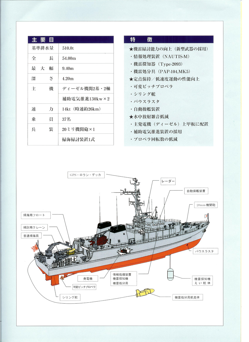 すがしま型2番艇。海上自衛隊のサイトでは「やえやま型(MSO Yaeyama Class)」となっているが、MSOは掃海艇ではなく掃海「艦」なのできっと間違い。